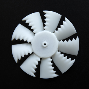 After forming his hypothesis, Fish connected with the mechanical and aerospace engineer Dr. Phillip Watts, who was already versed in the importance of biomimicry from his work in biomechanics, to help with fluid dynamics analysis. After running several fluid dynamics simulations on fins with and without tubercles, the team realized that the bumps not only increased the whale’s life in the water, but also simultaneously reduced the drag, or fluid resistance. In effect, the unassuming bumps act as a stall management system, delaying fall to higher angles while the whale develops lift and turns tightly. After further exploring the whale’s natural advantage, the team surmised that the same advantage—the leading-edge bumps—could be applied to the developed devices of humankind.
